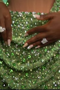 Real Warri Pikin likes to slay and her fashion designers over the years have understood this assignment. Most times, her fashion designers are experts in making unique dresses for her. With a fashion reference to the Wicked movie character, Elphaba, Real Warri Pikin dressed in a Medlin boss stone studded gown for the movie premiere. The gown glitters in appreciation to the stones embroidered on it. The green-themed gown glitters…